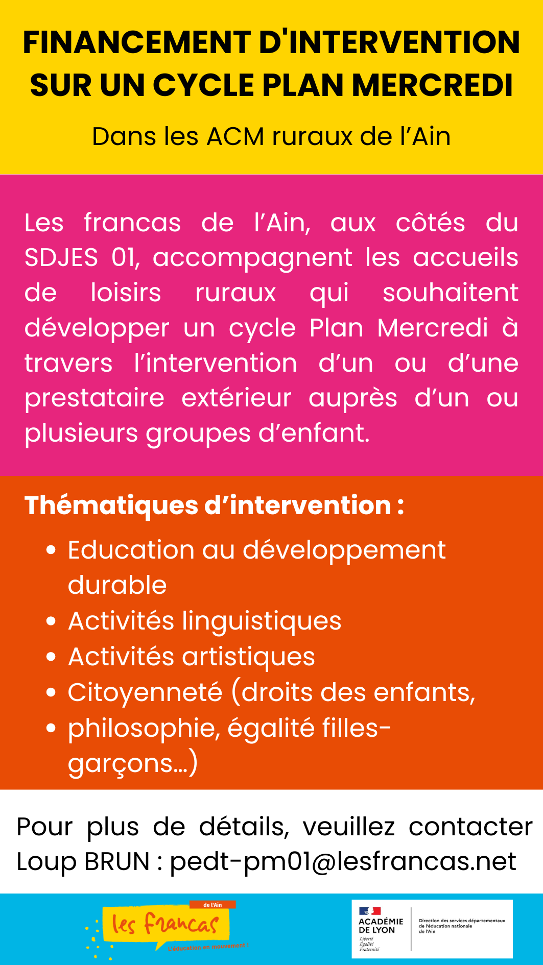 Pour plus de détail, veuillez contacter Loup Brun au 06 48 24 74 43 – pedt-pm01@lesfrancas.net